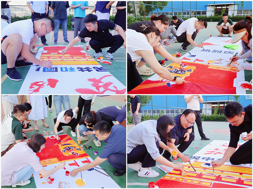 金秋九月,丹桂飄香,陽光燦爛,集團(tuán)室外籃球場上,來自集團(tuán)各車間工會的60余名職工全神貫注地投入到巨畫繪制中。大家手持畫筆,沾上顏料,涂上顏色,用一筆一畫描繪自己對祖國的熱愛與祝福。活動以小組為單位,大家分工協(xié)作、密切配合,相互交流著、探討著,共同為繪制這幅巨畫而努力。